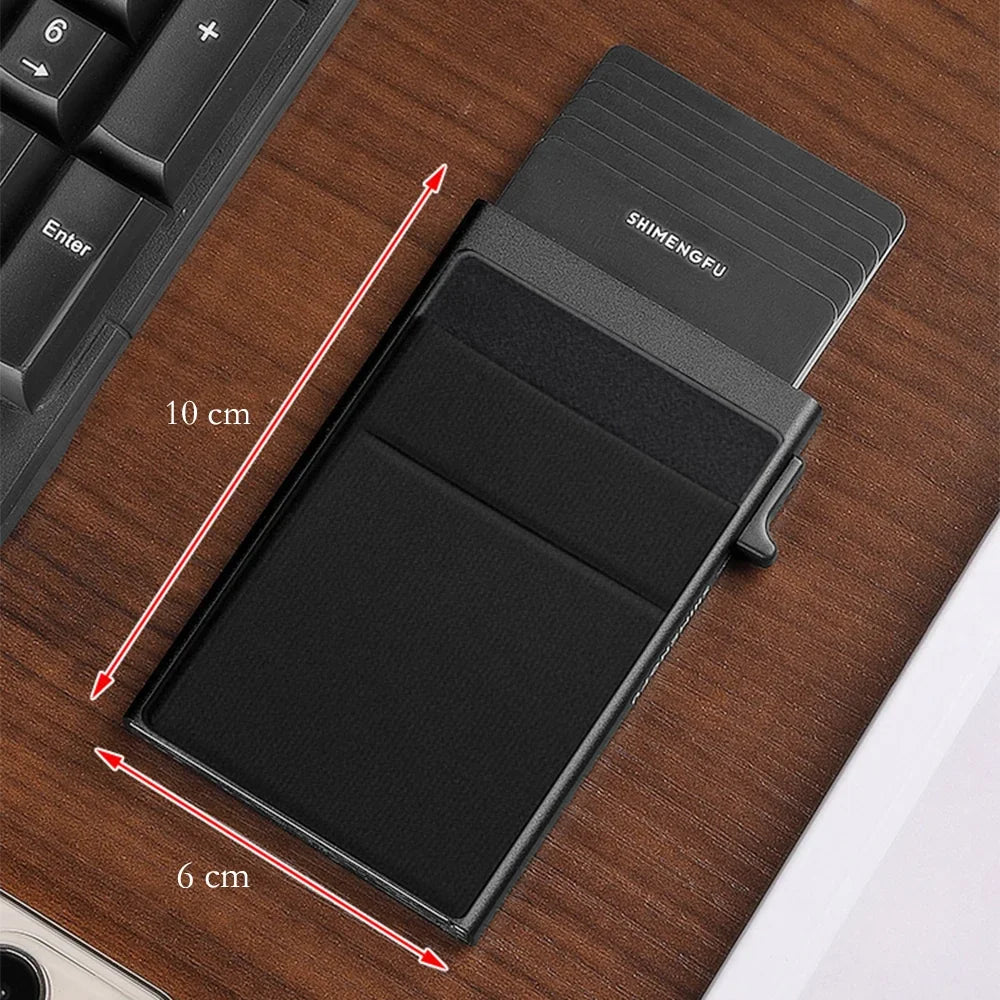 This RFID credit card holder for men offers a slim, minimalist design that fits comfortably in any pocket, making it perfect for those who prefer a lightweight, compact wallet. Made with luxury metal materials, it provides secure storage for credit cards, ID, and bank cards while protecting them ...